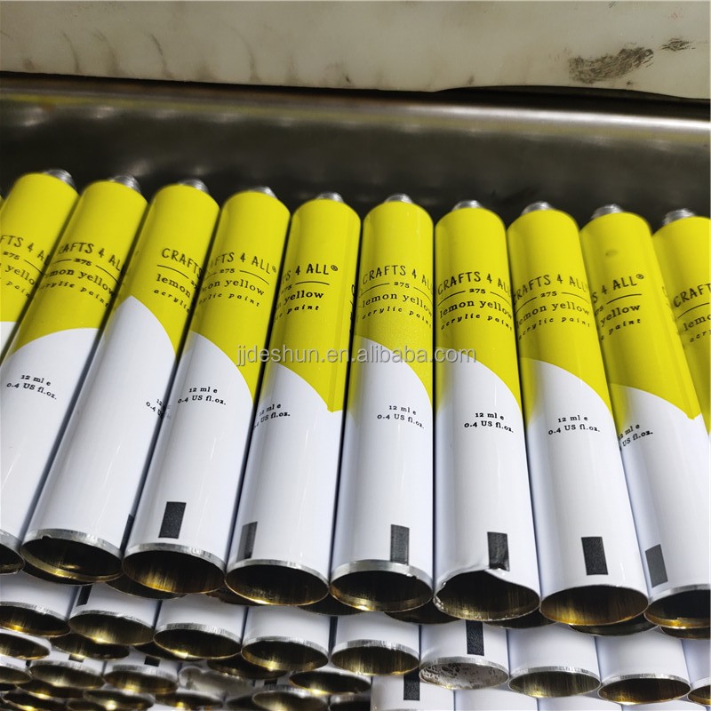 Color Paint 12ml Acrylic Aluminium Tube Diameter 16mm Custom Yellow Black Green Collapsible Tube For Waterclolor
